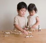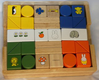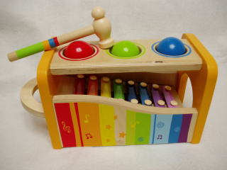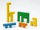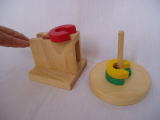 カラフルな色使いと木の手ざわりが特徴です。 |