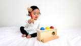 【遊び方】この時期の赤ちゃんには小さな音をゆっくり聞かせてあげてください。 その時には言葉をそえて話しかけてください。 |